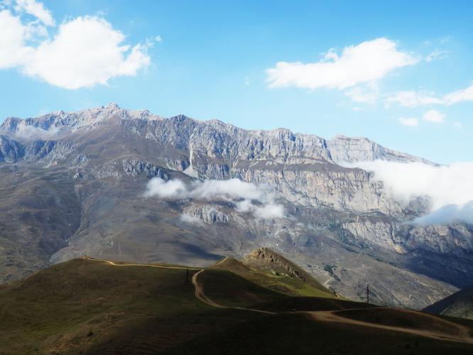 Прямо из лагеря нам виден огромный Каргашильский хребет. На самом верху хребта находится ледник Жигинджи, который тает и дает начало одноименной реке. Река стремительно прыгает по уступам хребта и превращается в прекрасный водопад.
